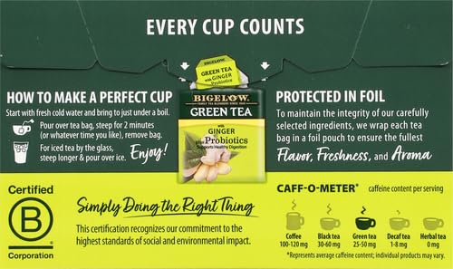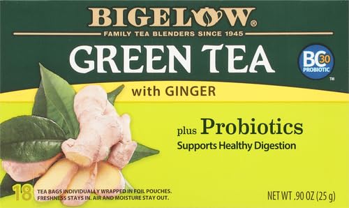 Bigelow, Green Tea with Ginger Plus Probiotics, 18 Tea Bags