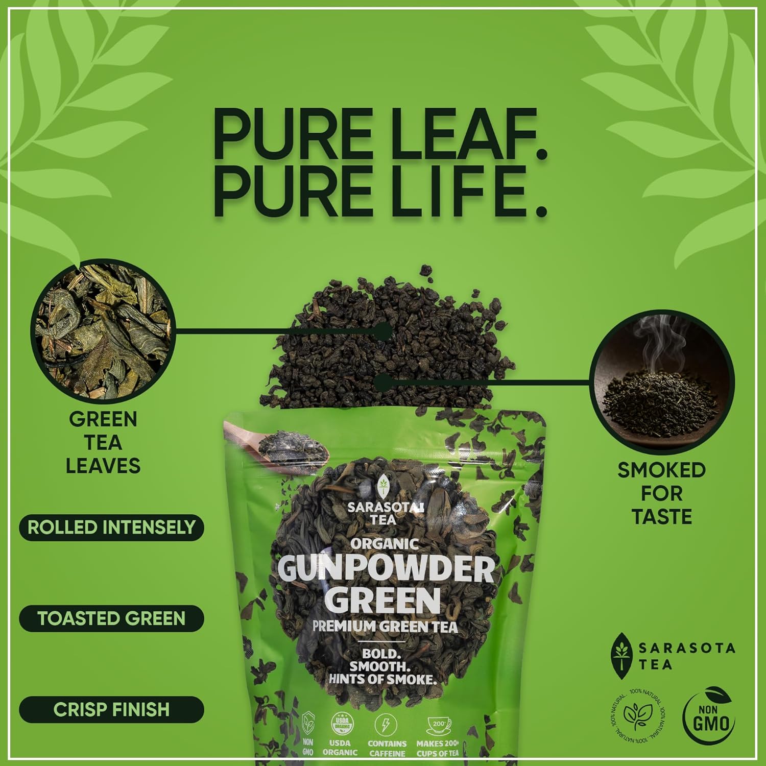 Organic Gunpowder Green Loose Leaf Tea | 100% USDA Organic Chinese Green Tea | Premium Grade | Bold & Earthy Flavor | 8oz Bulk Bag | High Antioxidants | Hot or Iced | Non-GMO