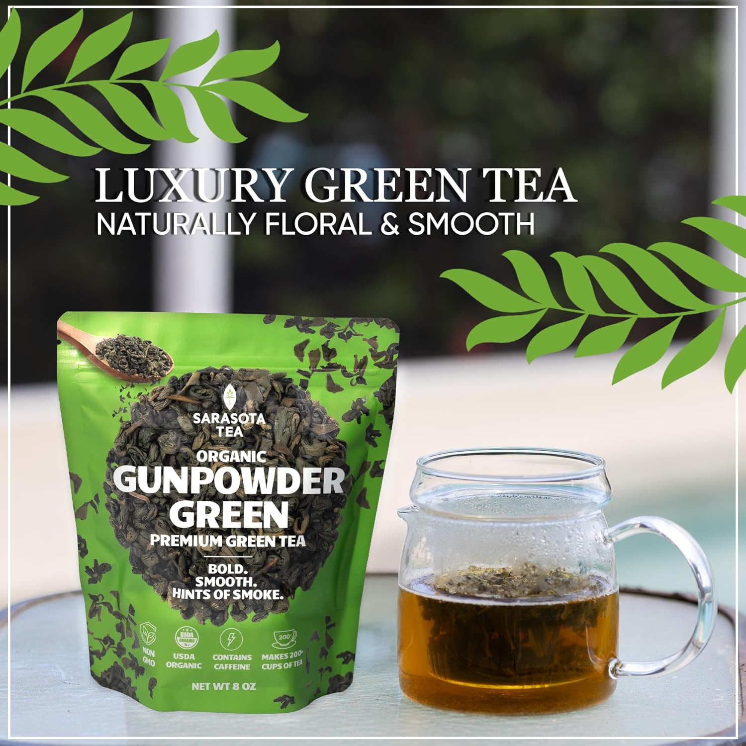 Organic Gunpowder Green Loose Leaf Tea | 100% USDA Organic Chinese Green Tea | Premium Grade | Bold & Earthy Flavor | 8oz Bulk Bag | High Antioxidants | Hot or Iced | Non-GMO