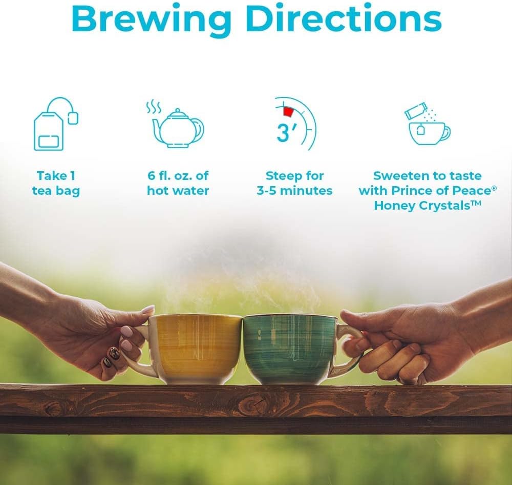 - Place a Prince of Peace Green Tea bag in a 6–8 fl. oz. cup.