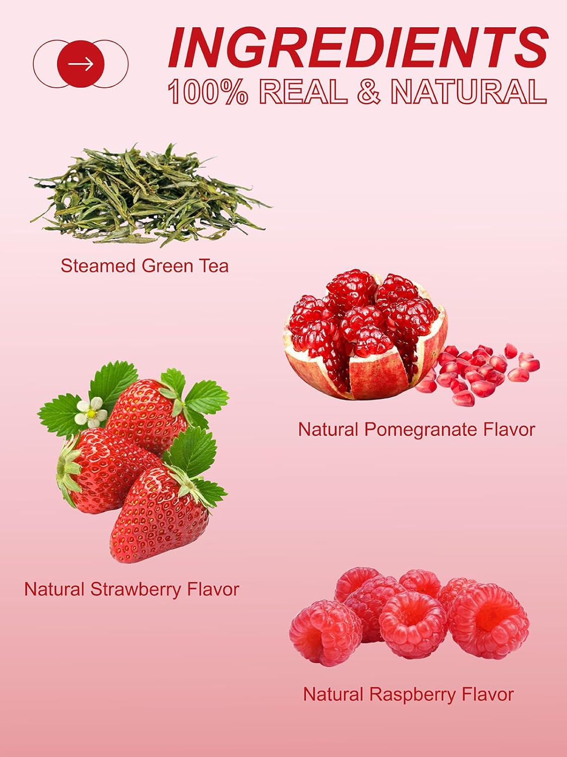 TeeLux Pomegranate Raspberry Strawberry Green Tea, Fruit Flavored Green Tea, Berry Aroma & Crisp Taste, Hot & Iced Tea, 100 Count