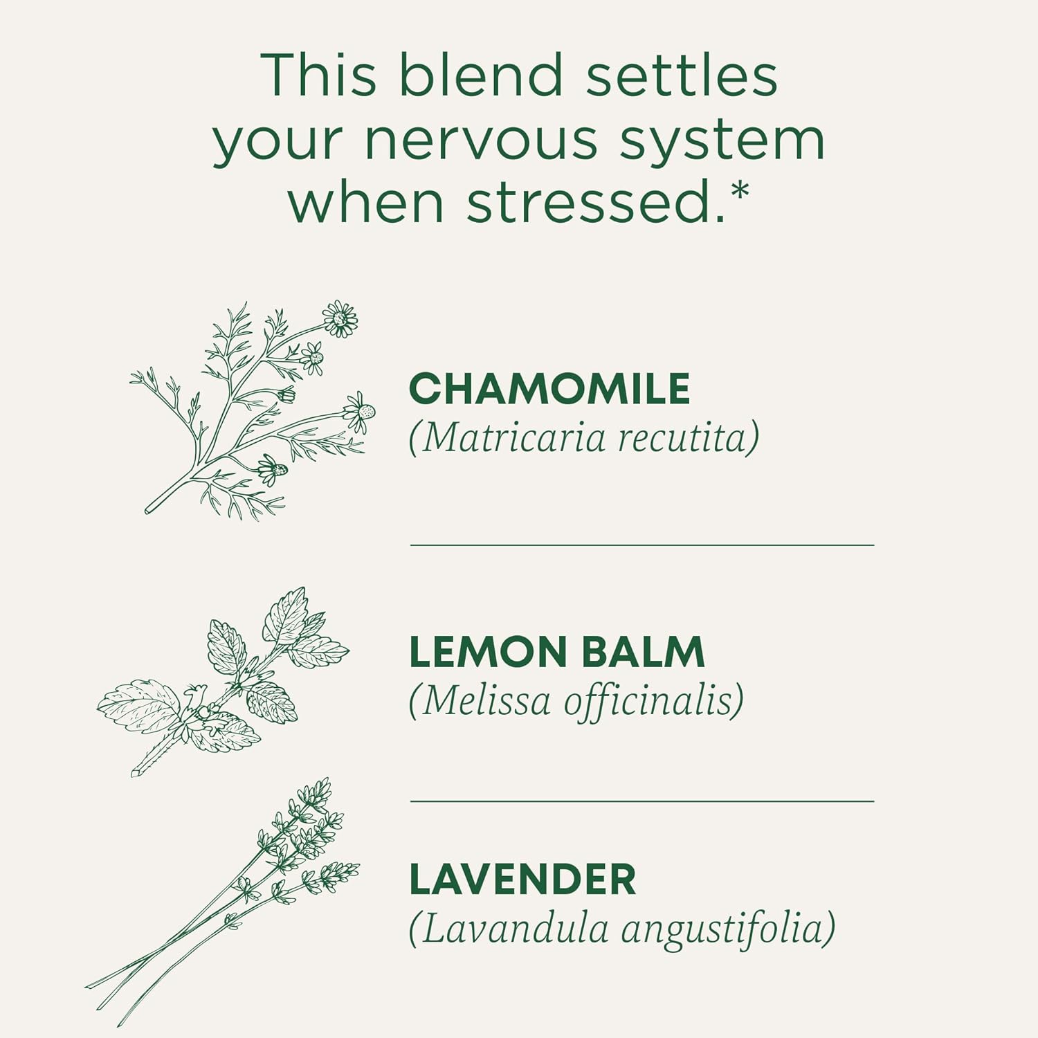 | Benefits | Calms your nerves and supports healthy digestion.* | Relieves occasional indigestion or nausea.* | Calming and relaxing when you need it most.* | Promotes a Good Night's Sleep.* | Relieves Tension and Promotes Relaxation.* | Gentle and mildly relaxing, relieves tension and relieves occasional indigestion.* |