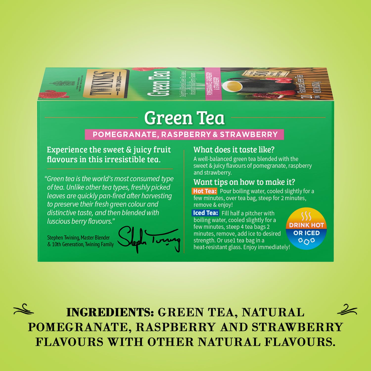 Twinings Green Tea with Pomegranate, Raspberry, and Strawberry – Caffeinated Green Tea Bags Individually Wrapped, 20 Count (Pack of 2)