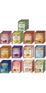 This tea bag variety pack includes all 13 of Twinings' herbal tea varieties, including lemon & ginger tea, chamomile tea, peppermint tea, and many more! The best part about tea samplers is that you get to discover new flavors! It makes your daily cup of tea not only delicious, but exciting!