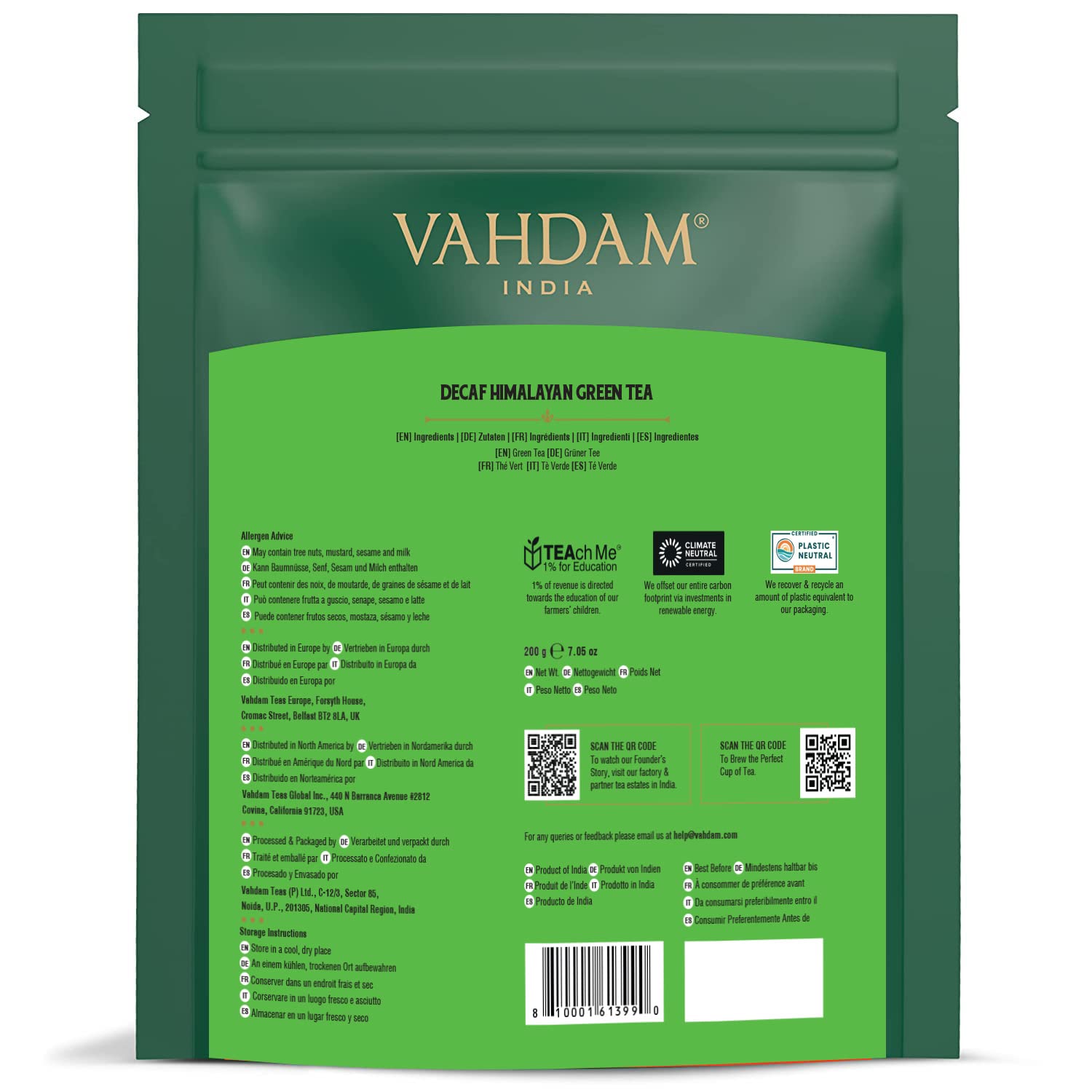 VAHDAM, Decaf Himalayan Green Tea Bags (100 Pyramid Tea Bags) Caffeine Free, Gluten Free | High Grown Decaf Green Tea | Resealable Ziplock Pouch | Pyramid Tea Bags